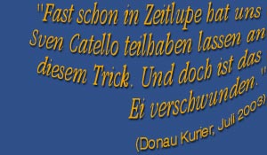 Zusammen mit Ihren Gästen stellt Sven Catello die Welt auf den Kopf und setzt Naturgesetze außer Kraft moderne Zauberkunst, sprachlich durchdacht (deutsch oder englisch) mit sorgfältig ausgewählten musikalischen Elementen.