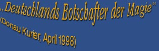 außergewöhnliches Programm. Seit zwanzig Jahren organisiere ich die Ingolstädter Zaubertage, eines der größten magischen Festivals Deutschlands. Als Veranstalter vieler Shows, Auftritte und Events weiß ich um die Herausforderungen, die dieser Job mit sich bringt. Sie können sich deshalb ganz auf mich verlassen. Abwicklung und Auftritt erfolgen professionell und reibungslos. Dabei ist meine Show immer auf die Anforderungen Ihrer Bühne und Ihres Publikums zugeschnitten. Meine besondere Stärke ist es, die Zuschauer zu involvieren. So arbeite ich am liebsten mit Themen, die alle Gäste interessieren - zum Beispiel Gegenstände aus dem Alltagsleben, frisch und neu interpretiert und aus einem spannenden Blickwinkel gesehen. Als Diplom-Mathematiker fasziniert mich die Welt der Magie. Ich habe großen Spaß daran, Effekte genau auszutüfteln, und mit Alltäglichkeiten zu verblüffen, die scheinbar ein kniffliges Eigenleben führen. Ich bin Mitglied im Magischen Zirkel Deutschland, der renommiertesten Zauberer-Vereinigung. Daneben organisiere ich seit 1997 eines der größten Zauber-Festivals Deutschland, die Ingolstädter Zaubertage. Meine Arbeit wurde mit verschiedenen, internationalen Preisen ausgezeichnet: 1. Platz bei der Deutschen Meisterschaft 1996 für Kinder-Zauberkunst und mit einem dritten Platz bei der Weltmeisterschaft 1997 der Zauberkünstler im Bereich Großillusionen. Wenn Sie bei einer meiner Shows einmal live dabei sein möchten, dann finden Sie hier die nächsten Termine. Oder Sie rufen mich gleich mal an und wir sprechen über alle Möglichkeiten für Ihre Bühne – bitte hier klicken. |