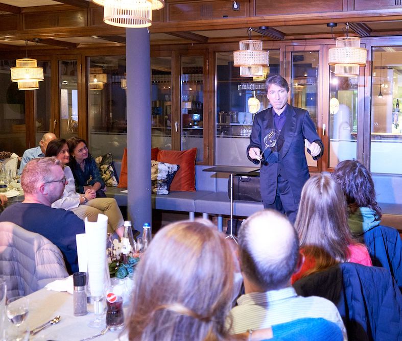 Zwischen den Menügängen treten die Zauberkünstler auf den Plan. Inmitten des Publikums zeigen sie ihre Kunst und bringen die Zuschauer zum Staunen und Lachen, so dass der Abend unvergesslich wird. Genießen Sie also einen wunderbaren Abend mit Freunden, guten Gesprächen, Essen und Zauberei, die Ihnen lange in Erinnerung bleiben wird. Nicht umsonst ist diese Veranstaltung seit mehreren Jahrzehnten beim Ingolstädter Publikum so begehrt. Bitte bestellen Sie Ihre Karten immer unter dem gleichen Namen, wenn Sie zusammen an einem Tisch sitzen wollen. Für